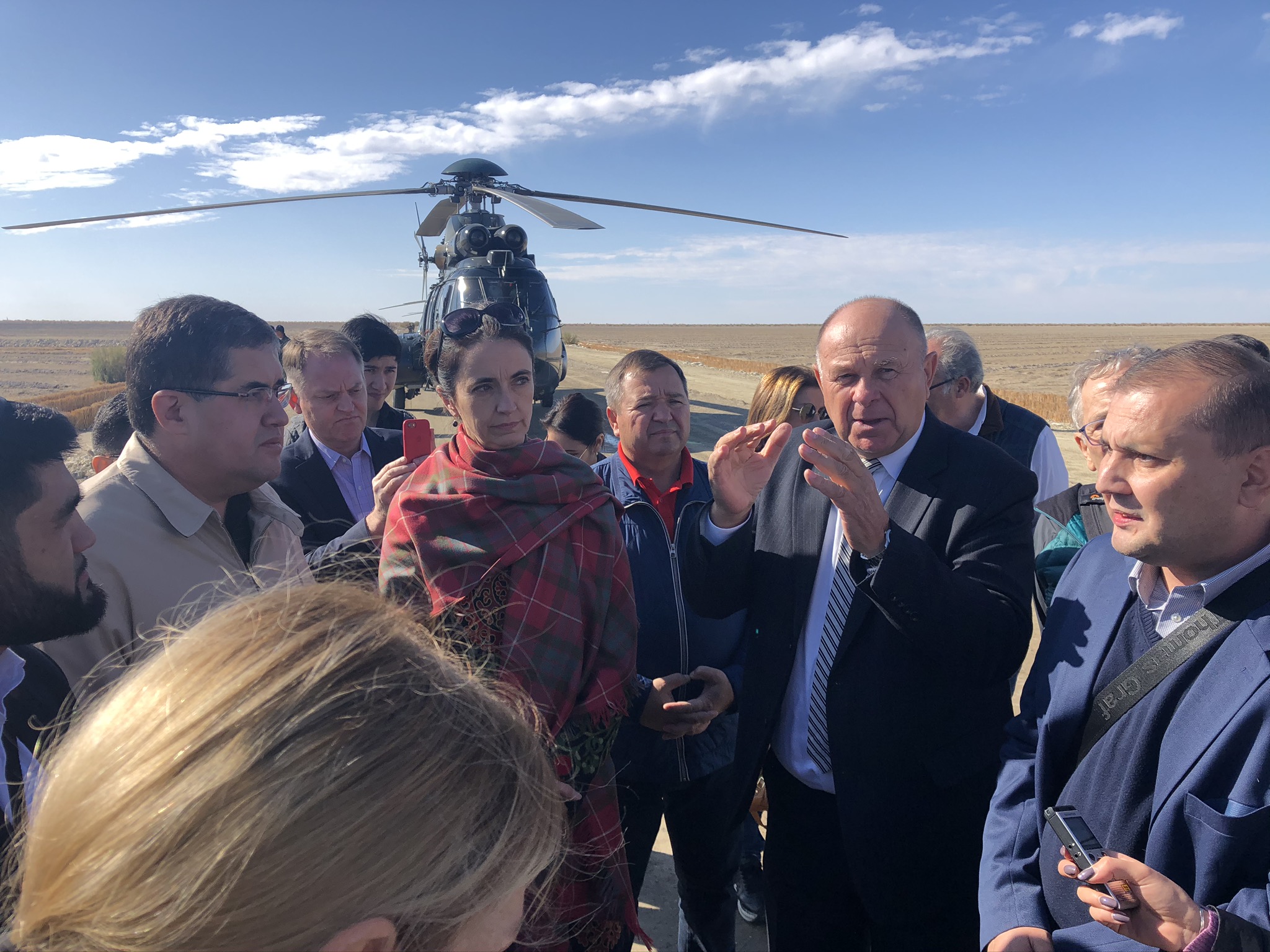 Die Situation stellt die Aralsee und den Staat Usbekistan vor große Herausforderungen. Sie betrifft nicht nur Usbekisan, sondern es ist eine Herausforderung für ganz Zentralasien, und sie hat globale Aspekte. Die Regierung hat bereits einige Projekte in die Region gebracht. Der Staat hat verbesserte Rahmenbedingungen geschaffen. „Ich war im April hier“, erklärt Peter Burian, Botschafter und EU Special Representative for Central Asia at European External Action Service, „seitdem hat sich schon Einiges getan.“ So gibt es in Monyak eine neue Fabrik, in der 700 neue Arbeitsplätze entstanden. Mit Baumwollstoffen aus der Region wird Kleidung hergestellt. Die Wertschöpfungskette der Baumwolle bleibt so im Land.